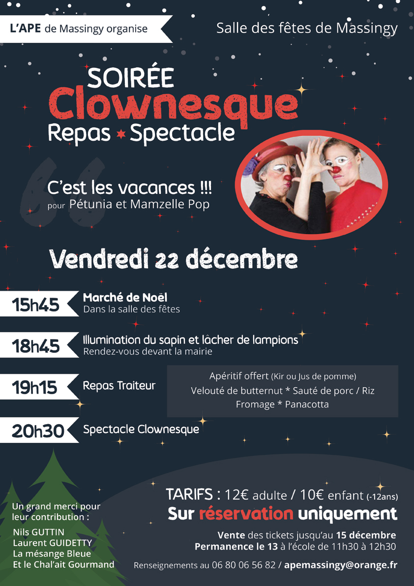 Évènements Fête de Noël 2017 by Alexandra G. décembre 13, 2017 No Comments Renseignements auprès d’Elodie au 06 80 06 56 82 ou bien par mail sur apemassingy@orange.fr Articles similaires